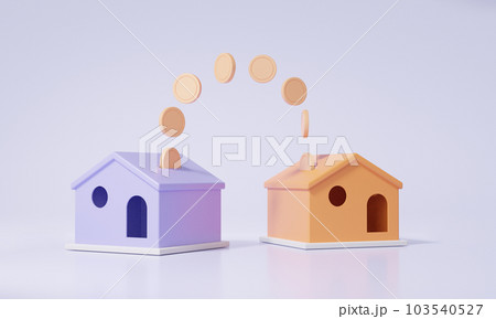 3D渲染兩個家庭轉移資金的概念。 金融支持房地產企業投資