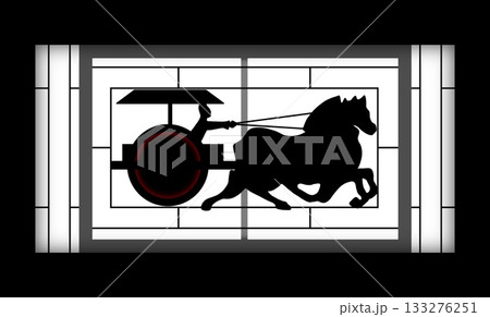 Silhouette artwork of a Qin era chariot warrior pulled by a galloping horse, designed in a modern stained glass style with bold geometric framing and a dramatic glowing wheel accent