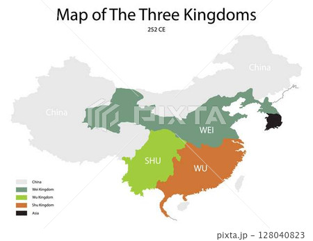 illustration of history and politics, The Three Kingdoms from 220 to 280 AD was the tripartite division of China among the dynastic states of Cao Wei, Shu Han and Eastern Wu