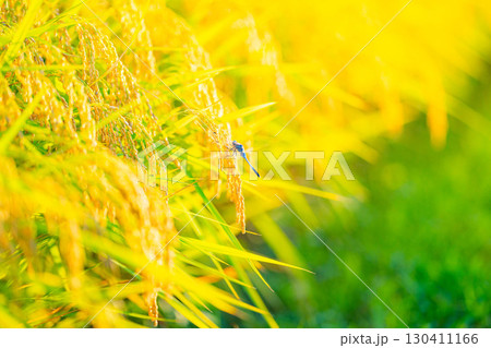 [稻米材料]早上在中野的梯田裡的稻米[山梨縣]