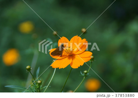 單字蛾(Ichimon jiseseri)和黃色花秋天櫻花