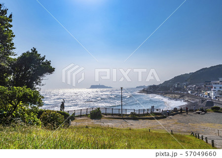 湘南/從稻村崎(神奈川縣鎌倉市)欣賞冬季晴朗的江之島和富士山