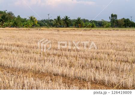 Rural fields harvesting rice amidst nature's serenity and agriculture