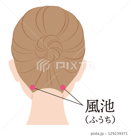 頭部後方的穴位說明日本3D模型的上半身背面插圖
