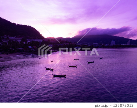 aerial view sunset landscape Amazing light of nature cloudscape sky above Phuket sea.