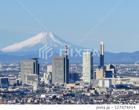 埼玉市埼玉新都心及富士山鳥瞰圖