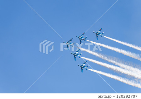 藍天上飛翔的松島空軍基地的藍色脈衝號 宮城縣東松島市