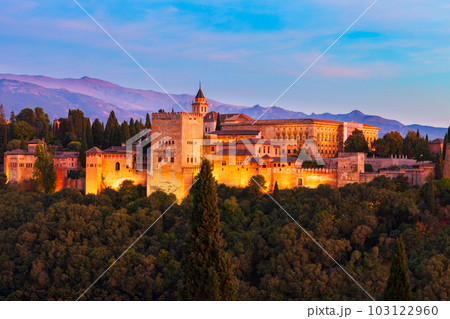 The Alhambra aerial panoramic view in Granada, Spain