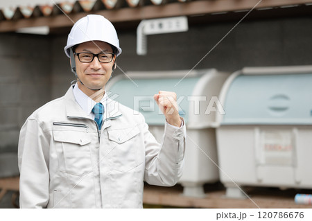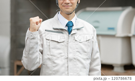 有工作服的男人發揮膽量