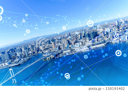 從空中俯瞰東京灣地區和彩虹橋。