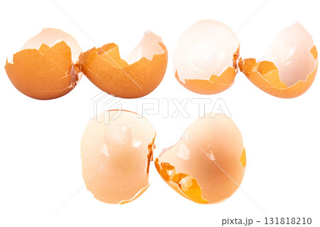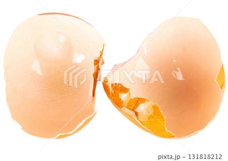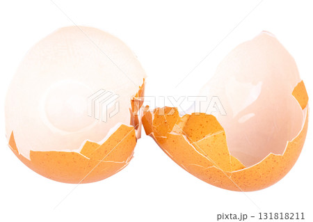 Broken chicken eggshell on white background