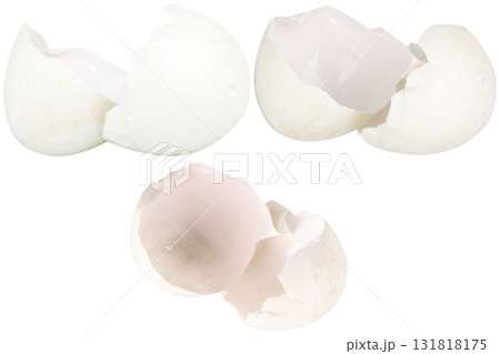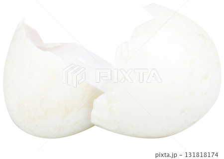 Broken duck eggshell on white background