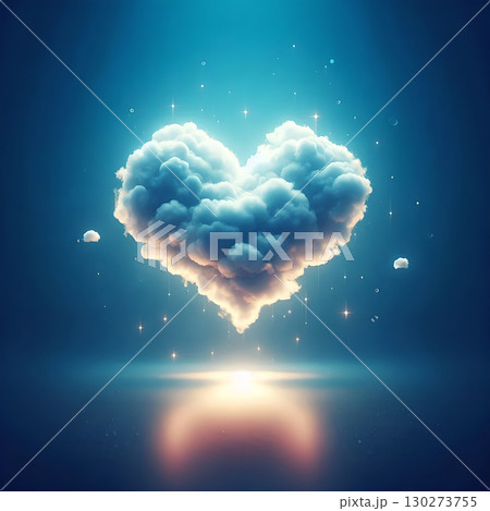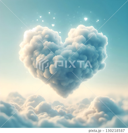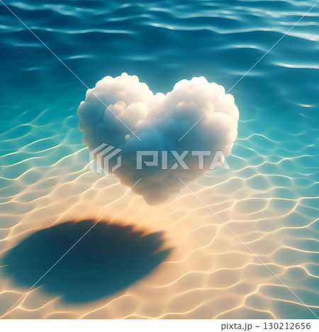 漂浮在海面上的愛心雲朵、世界地球日、環境、環保、天氣或交通、與大海的溝通、海上報告、材料表
