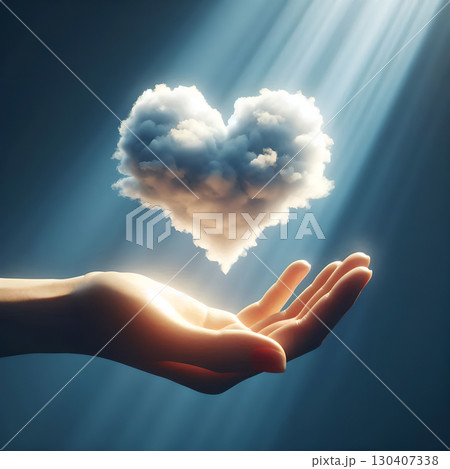 一隻手和一顆愛心組成的雲朵,中間形成的光泡,地球日,環境,環境保護,天氣相關信息,海上報告報告,材料表