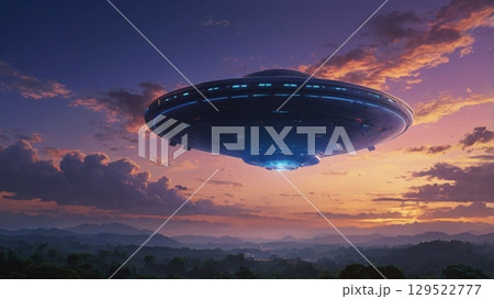 神秘的飛行物滑過奇幻的天空和超越光的世界
