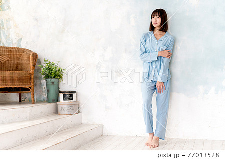 一個穿著睡衣沐浴在早晨陽光下的女人