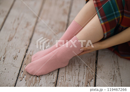 女人穿著房間襪子,對寒冷敏感,身體部位,部位切割,沒有臉