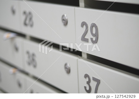 Mailboxes lined up with numbers in a modern setting