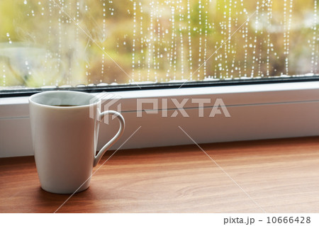 Toy Sailboat on Windowsill with Raindrops on Glass
