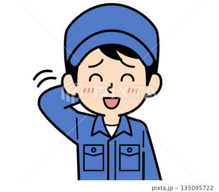 一位身著休閒服的年輕男子微笑著,略顯尷尬(全身,正面)