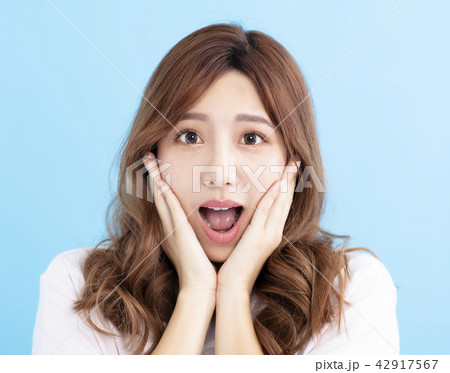 Portrait of a young Asian businesswoman against white background covering mouth with both hands gesture