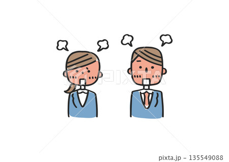 一對身穿西裝的男女,臉漲得通紅,一臉尷尬。