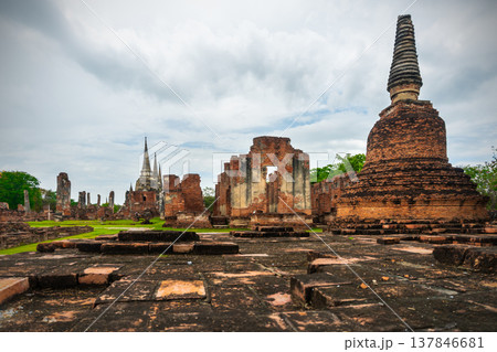 Landscape of Wat Phra Si Sanphet is in the Ayutthaya Historical Park. It is a place and important tourist attraction near Bangkok, Thailand.
