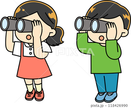 調查雙筒望遠鏡的男孩和女孩