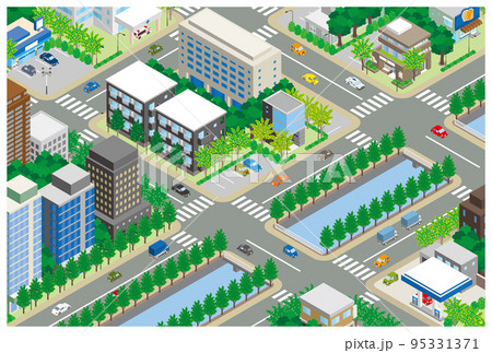 Highway intersection traffic. Urban landscape isometric with various vehicle cars buses busy city 3d illustration