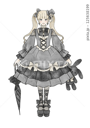 身穿黑色連身裙的洛麗塔女孩插圖
