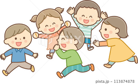 孩子們一邊奔跑一邊和朋友開心地聊天