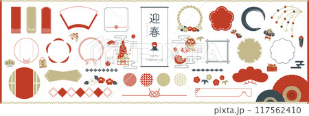 可愛的松竹梅框架材料(背景紅色格子圖案)