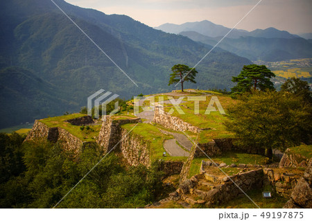 從雲彩的兵庫Asago武田城堡視圖