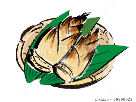 籃子裡的竹筍,日式毛筆畫風格插畫素材