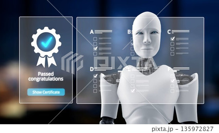 Certified concept. A person holds a glowing holographic badge displaying the word "Certified" with a checkmark and stars, symbolizing quality assurance, accreditation, and validation. ISO Certified,