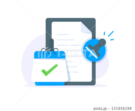 new regulation concept, document with an approval stamp and a calendar. for implementation and approval of new policies