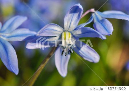 Snowdrops with dew in the early morning outdoor. First spring flowers,sunlight.
