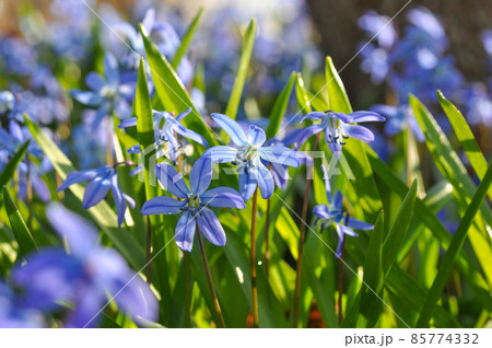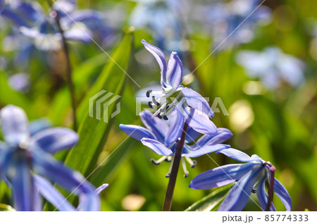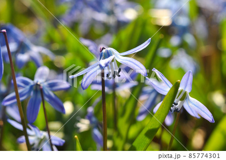 Flowers snowdrops in garden, sunlight. First beautiful snowdrops in spring. Common snowdrop blooming. Galanthus nivalis bloom in spring forest