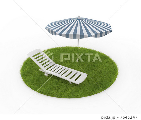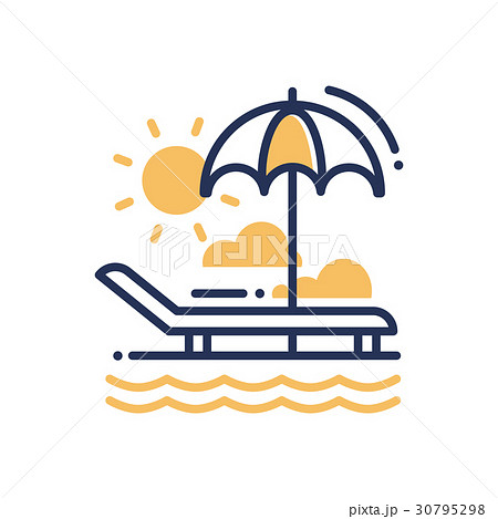 Sunbathing chair with beach umbrella. Sun lounger. Vacation and travel concept.