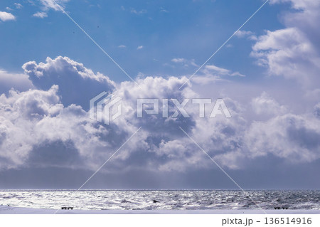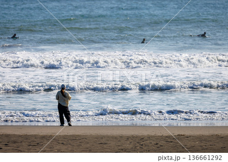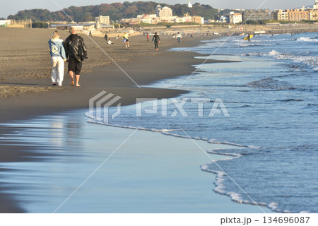秋天的茅崎市茅崎海岸的海灘和陽光[10月]