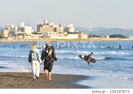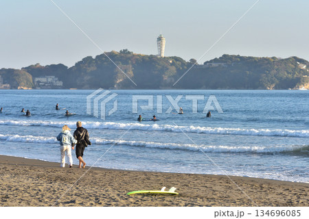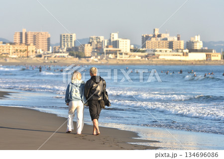 秋天神奈川縣茅崎海灘的晨景[10月]