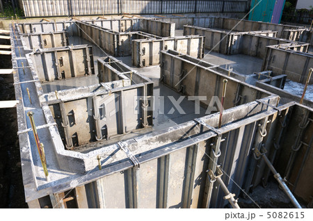 房屋圖片:正在為公寓大樓的基礎工程澆築混凝土