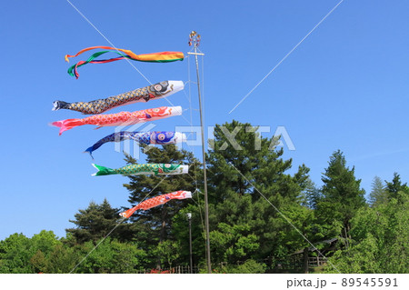 鯉魚幡比屋頂還高 鯉魚幡在藍天裡游
