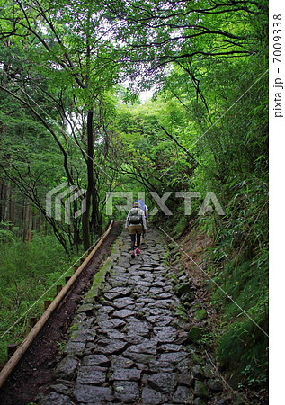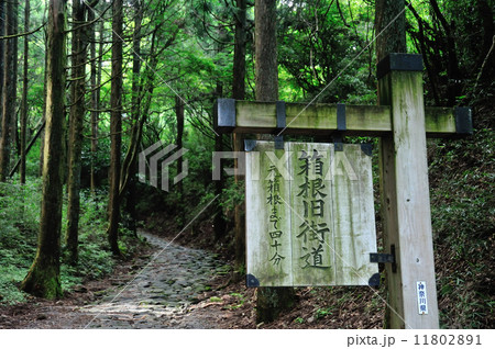 箱根町箱根舊高速公路鵝卵石和徒步旅行者