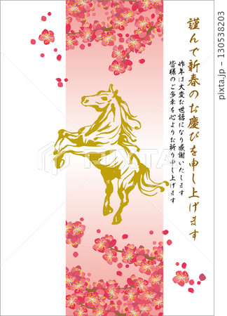 新年賀卡<明信片模板梅花,馬年,2026年,令和8年,梅花,豎排,豎排文字>