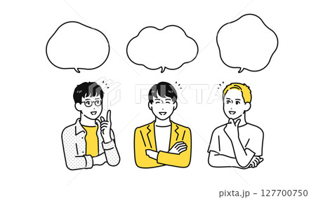 一組在操作智慧型手機時遇到困難的男性_向量插圖