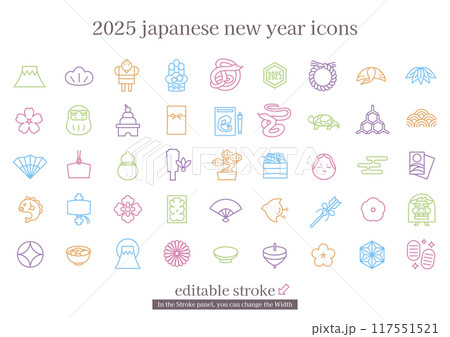 日本新年圖標集 2025 年蛇年(可編輯筆劃)