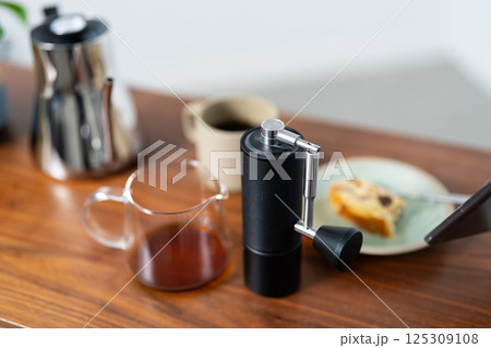 sleek minimalist mug on wooden table with soft natural lighting and gentle shadows creates calming atmosphere