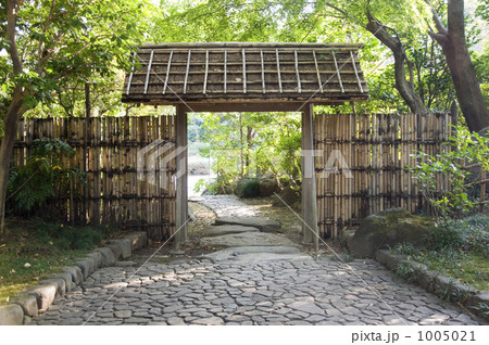 日本庭園裡的竹門