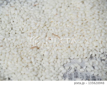 當我查看大米時,我發現了很多令人作嘔的印度谷螟幼蟲。